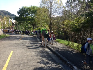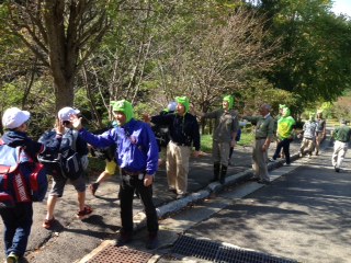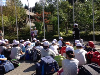 退所式を行いました。山の家の活動を振り返って,いろいろな人と話ができたということを実感できたようです。いよいよ山の家を後にします。最後には,とても暖かく見送ってもらいました。