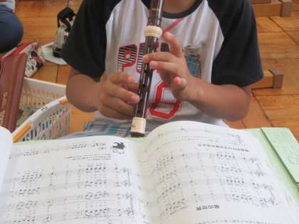 「雨のうた」を聴いて,リコーダーで演奏しました。楽譜の中に出てくるD.C.(ダ・カーポ)とFine(フィーネ)の意味を確かめました。そして,イ短調とハ長調の響きを感じながら演奏しました。