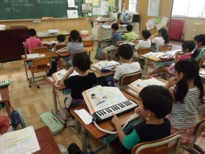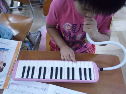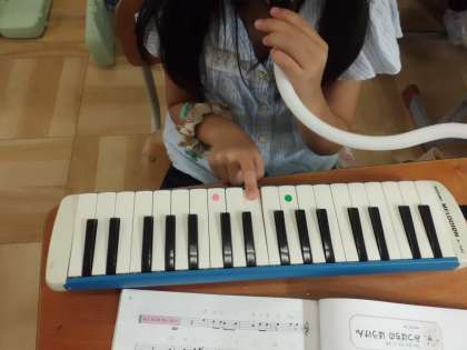 音楽科の「どれみでうたったりふいたりしよう」で,鍵盤ハーモニカの学習が始まりました。「けんばんハーモニカくん」からのお手紙が届き,いい音を出すコツを教えてもらった子どもたち。早速やる気満々に取り組んでいます。まずは,歌を歌いながらドの音の場所を覚えました。