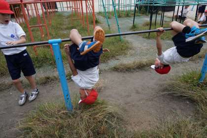 体育では,「鉄棒遊び」が始まりました。おさるになったり,こうもりになったり,いろいろな技に挑戦しています。