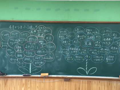 前期終業式の後、前期の振り返りを行いました。前期を振り返ってみて、「自分ができたこと」、「自分ができなかったこと」、「後期から頑張りたいこと」を考えました。多くの子どもが、「できたこと」をたくさん書けており、有意義な前期になったようでした。また、クラス全体の振り返りも行いました。「よかったこと」と「反省点」をあげました。反省点を後期の目標にし、頑張っていきたいです。