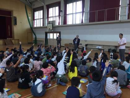 京都大学の教授が地震についての講義をしに来て下さいました 講義では、地震が起こるメカニズムや、地震の被害や対策など、多岐にわたる内容を教えていただきました。今話題になっている、南海トラフ地震についてのお話もしていただき、子どもたちは、今後来ると予想されている地震に危機感をもっているようでした。 最後の質疑応答の時間では、子どもたちの抱えている地震に関する質問がたくさん出ており、学んだことを自分たちなりに一生懸命考えていることがわかりました。