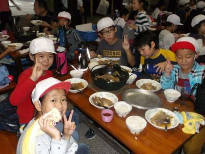 班のメンバーで協力して,すき焼き風煮を作りました。