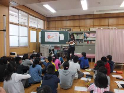 10月20日(木)視力検査を行いました。まゆ毛やまつ毛,まぶた,涙が目を守るために様々な役割を果たしているというお話を聞きました。