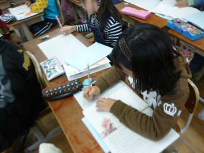 「はじめ」では,心にのこった言葉や最初の感想について書きました。「なか」では,いちばん心をうたれた場面を中心に書き,「終わり」では自分の考えを書いていきました。
