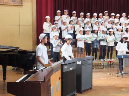 一方白組は,「いつでもあの海は」の2部合唱と「威風堂々」の合奏を行いました。練習の成果を発揮して,きれいに演奏することができました。