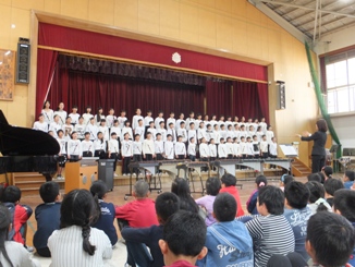 学習発表会が体育会で行われました。6年生の演目は「思い出アルバム〜心をこめて 仲間とともに」でした。豊かな響きの3部合唱や合奏の発表をすることができました。