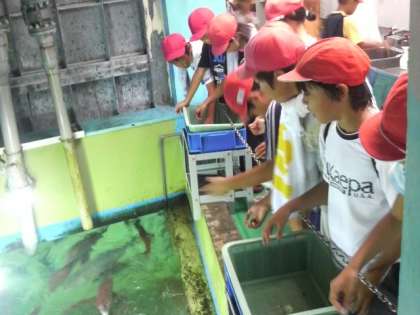 見学だけでなく,ペンギンの背中をさわったり,ふだん見られない水槽の裏側(バックヤード)でえさやりをしたりしました。