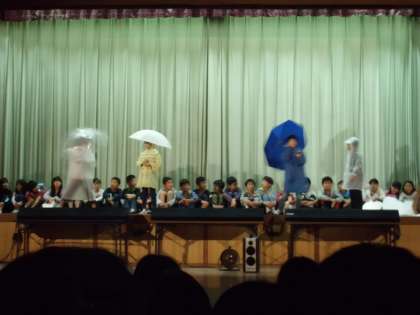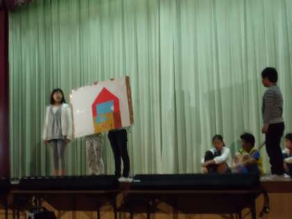 11月2日(水)に学習発表会がありました。4年生の演目は「防災きっず たんけんたい」。9月からの学習の総まとめとしての発表でした。自分たちが練習してきた大きな声や動きで,会場にいる観客に調べてきたことをしっかりと伝えられることができました。「最高の発表ができた」と感想をもった子どもたちも多く,自分たちで劇を作り上げたという達成感も味わうこともできたように思います。