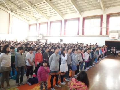 学習発表会では全校で合唱に取り組みました。楽曲は「小さいおくりもの」。教室で練習してきた記号の意味に気をつけて歌い,全校の歌声と合わせることで,きれいなハーモニーを生み出すことができました。