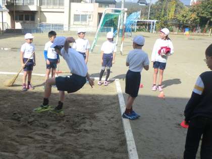 体育では走り幅跳びに取り組んでいます。