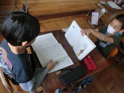 心に残った場面を友だちと交流しました。