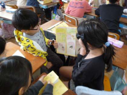 「スーパーマーケット」の工夫についてまとめたパンフレットを交流しました。