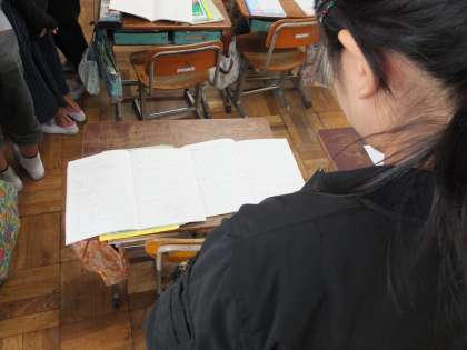 5年生になって毎日がんばって取り組んでいる自主学習ノートの交流を行いました。自分のがんばったところを交流し合い,お互いの頑張りを認め合うことができました。交流後は「○○さんが漢字や計算をびっしりやっていてすごいと思いました。」「図や言葉を使って予習や復習をしていたノートが良かったと思います。」といった意見が出ました。