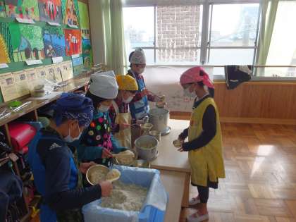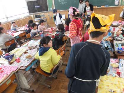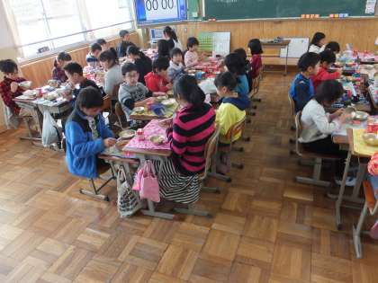11月10日(木)たてわり給食がありました。5年生は給食の配膳を行いました。低学年の量は少なめに,高学年の量は多めにするなど,考えながら上手に配膳をしていました。
