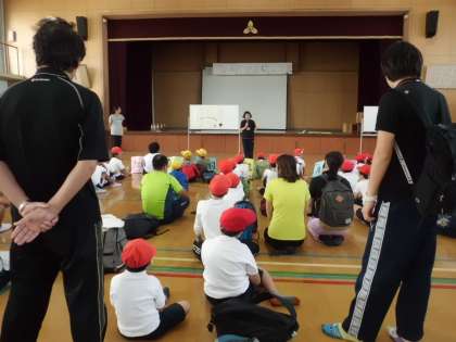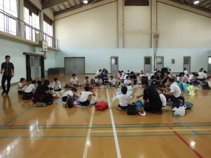 お弁当を体育館で食べて,「かえりの会」を行いました。