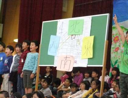 3年生は,「ようこそ!3年生の森へきつつきの商売より〜」3年生で学習したことをグル—ぷでまとめて発表しました。短い練習時間の中で,100名が気持ちを一つにして力を発揮できたことは,素晴らしかったです。