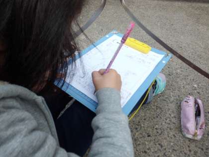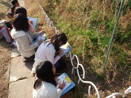 理科「季節と生き物(秋)」では,自分たちが観察を続けている生き物が秋になってどのようになっているのかを調べました。サクラ,ミカン,ツルレイシを観察し,色づいたり実ができていたり,葉が枯れていたりなど,夏の終わりとの違いを見つけることができた子どもたち。「葉がもっと色づく」「実が色づく」「もっと枯れてくる」など,これからの予想も書くことができました。