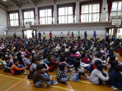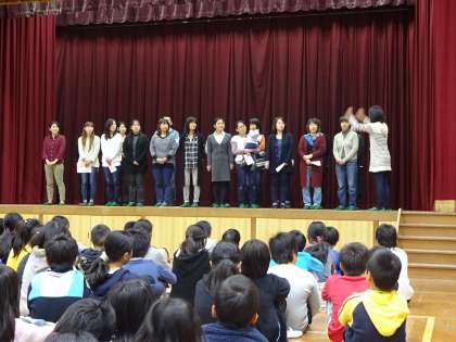 その後,PTAコーラスの方々による歌を聴かせていただきました。曲名は『ひまわりの約束』で,子どもたちは「聞いたことがある!」「知ってる!この歌!」と興奮しながら綺麗な歌声を聴いていました。