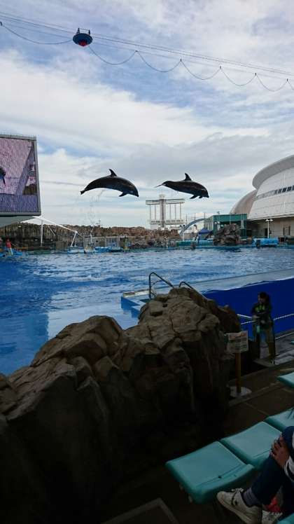 お昼ご飯を食べ終わり,イルカショーが始まりました。イルカは,約50種類のパフォーマンスができるそうです。