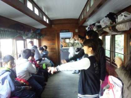 蒸気機関車に乗りました。発車時刻が決まっているので,乗り遅れないように走った人もいました。