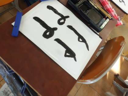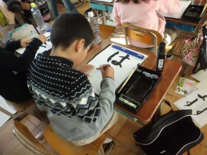 書写では「はす」の字に挑戦。筆の軸を回さず動かすことや結びの形に気をつけて書いていきました。