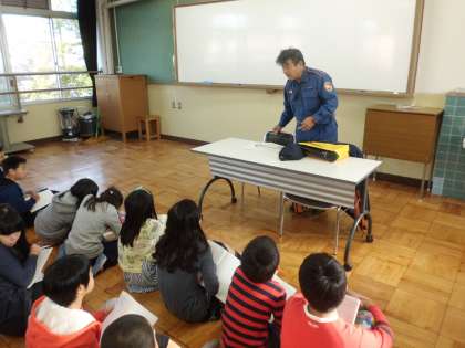 11月18日(金)に吉祥院消防分団の方に来ていただき,お話を伺いました。消防団と消防士の違いや普段の活動などを熱心にメモするだけでなく,たくさんの質問をしていく子どもたち。意欲的に取り組む姿が見られました。