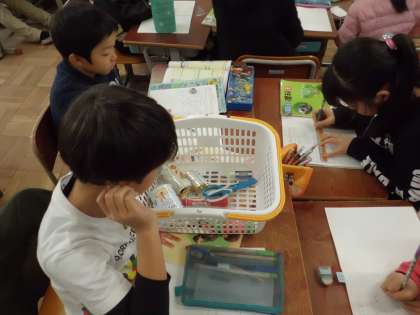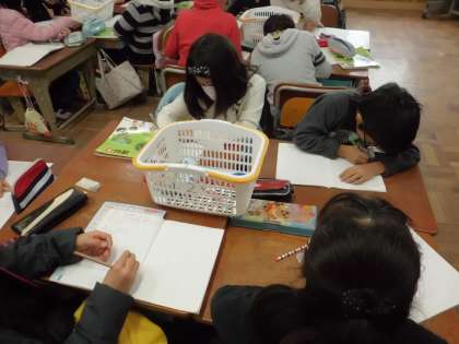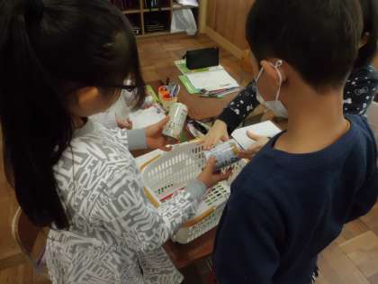 理科の授業でいろいろな物の重さを手にとって比べました。