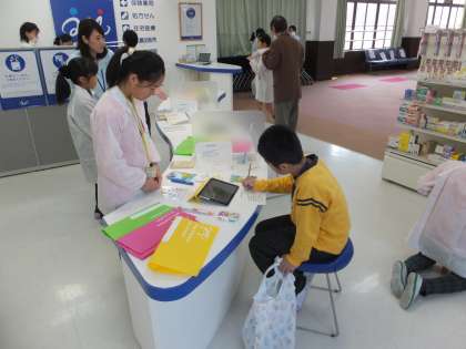 運送会社では,送り先をお客様に記入してもらったり,クイズをしたりしていました。新聞社では,自分たちの新聞の良さを伝えたり,薬局では,それぞれの社員や職員の健康相談を行ったりしていました。