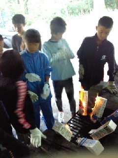 牛乳パックが全て焼けてなくなれば,できあがり。