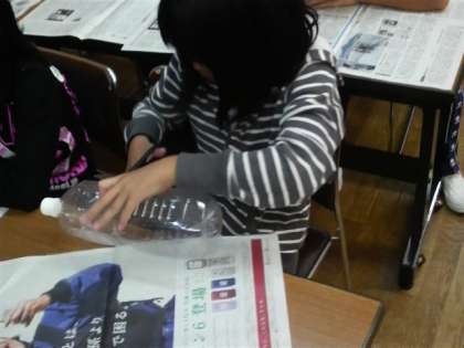 ペットボトルを切り,そこに穴をあけてろうそくを立てられるようにします。