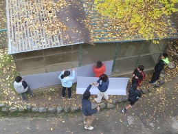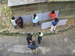 随分寒くなってきました。飼育委員会の子ども達が学校で飼っている生き物のためが,寒さをしのげるように準備をしました。風が吹き抜けないように覆いをかぶせました。