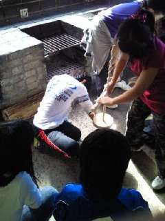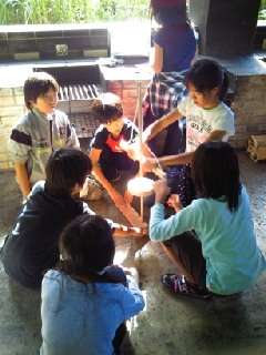 まず,火のおこし方を実際に見せていただいて,グループごとにチャレンジします。