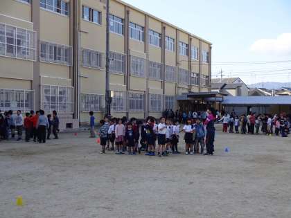 音楽が鳴ると同時に一斉に子どもたちが運動場を走っていました。