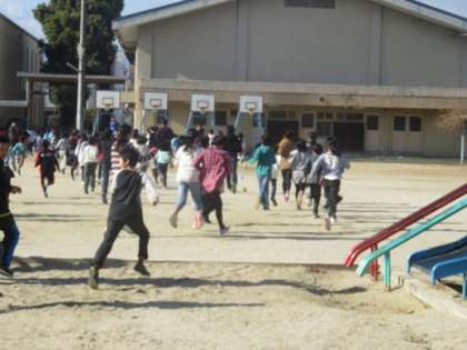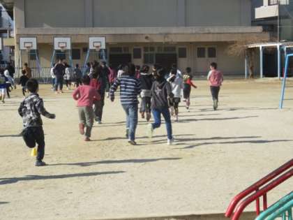 持久走記録会に向けて,全校ランニングが始まりました。中間休みに5分間,6年生は1周200メートルのコースを走ります。自分のたてた目標に向けて,走っています。