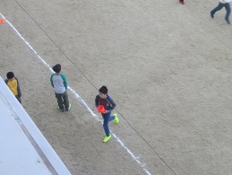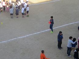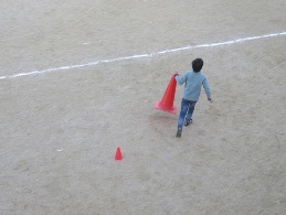 中間休みに全校ランニングを行っています。運動安全委員会の子ども達は,それぞれの学年が走るコースを分けるために,コーンの準備,後片付けを行っています。