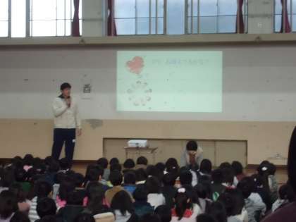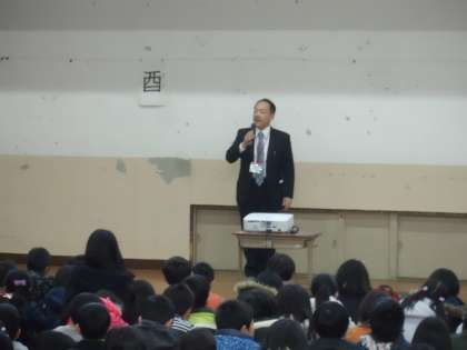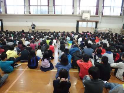 冬休み明けの1月10日(火),朝会がありました。校長先生からは後期後半に向けてがんばってほしいことのお話がありました。その後,保健委員会から風邪予防についての発表が。どちらも静かに話を聞くことができていました。いいスタートが切れました。
