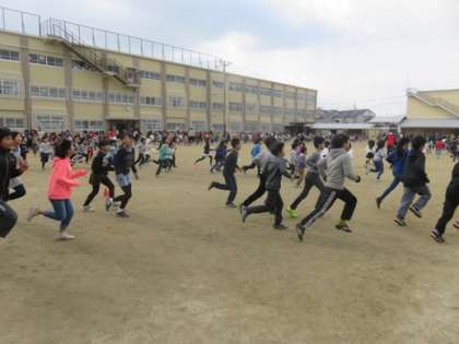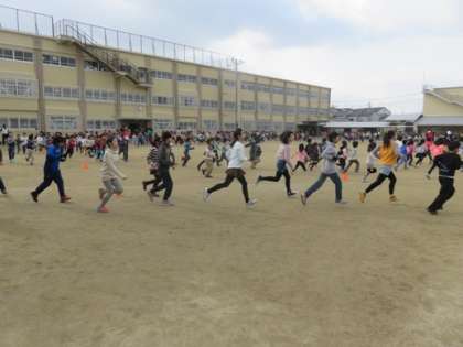 雪のため,中間休みのジョギングが中止になっていましたが,天気も良くなり,ジョギングを行いました。寒さに負けず子ども達は,元気に走っていました。