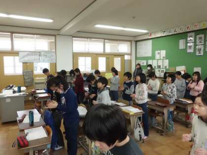 音楽科では「音のカーニバル」に挑戦。リズムパートのリズム打ちを覚え,歌に合わせていきました。踊りながら歌う子もいて,楽しく学習に取り組んでいました。