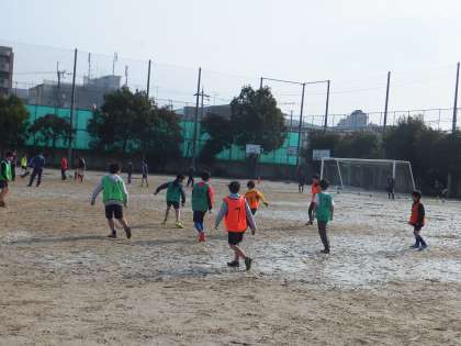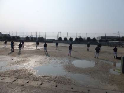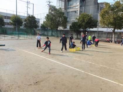 グラウンドでは男子ソフトテニス,野球,サッカーを体験しました。ソフトテニスではボールの打ち方,野球ではキャッチボールやバッティング,サッカーではシュート練習やミニゲームなど,中学生に教えてもらいながら楽しく体験ができました。