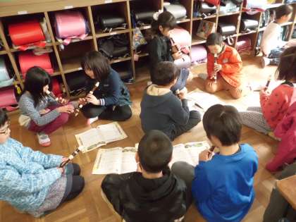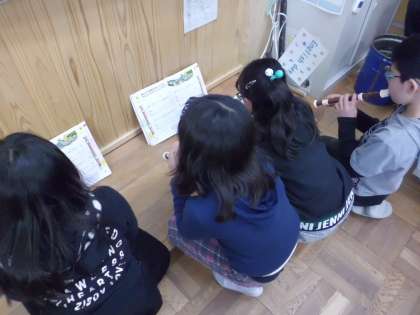 音楽の学習で「パフ」を練習しています。