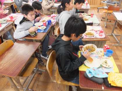 25日(水)の給食は,子どもに大人気の焼きそばでした。たくさんおかわりができて,大満足の様子でした。