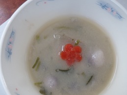 給食の献立に京風みそ汁が出ました。そのなかにしあわせにんじんが入っていました。さらにしあわせ大根も入っていて子ども達は驚き,喜んでいました。