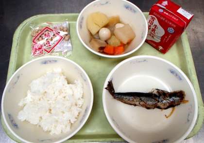 節分の日には,豆をまいたり,いわしを焼いて食べたりする習慣から,今日は,京都府の漁港で水揚げされたいわしをしょうが煮にし,いり豆をつけました。