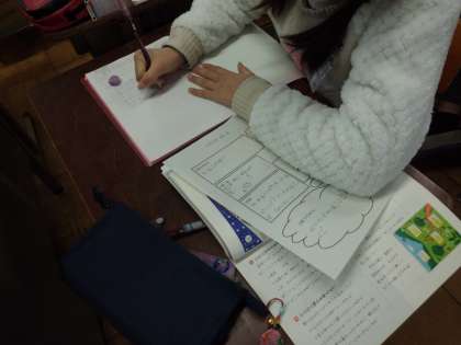 国語科では「詩をつくろう」の学習をしました。工藤直子さんの「のはらうた」にならって,野原の住人になり切って詩を作りました。繰り返しや比喩など,工夫した詩がたくさんできあがりました。