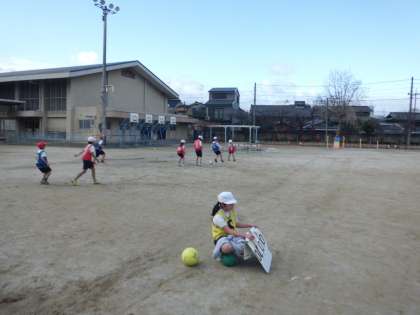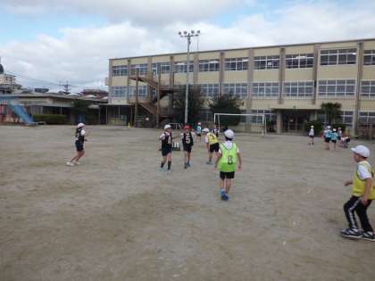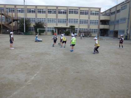 体育科では「サッカー」の学習が始まりました。ドリブルしたり,パスをつないだりして相手ゴールを目指します。全員がゴールを決めれば,試合終了後に3点のボーナスが!みんながゴールできるように,協力しながらプレーしています。
