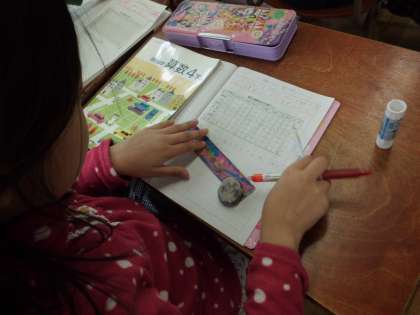 算数科「調べ方と整理のしかた」の単元では,2つのことがらを整理する学習をしています。まずは,2つのことがらを整理した表の読み方の学習。どこでどんなけがをした人が一番多いのか,たてと横の項目を読んで,目的の数字を探し出すことができました。