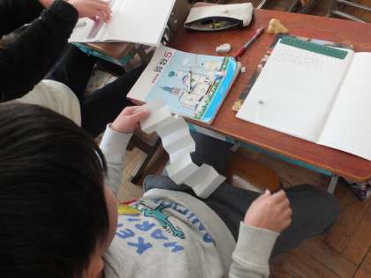 5年生の算数の学習で,長方形の紙を折っていくと,いくつの長方形に分かれるかを準準備調べ,表にまとめてきまりを見つける学習を行いました。