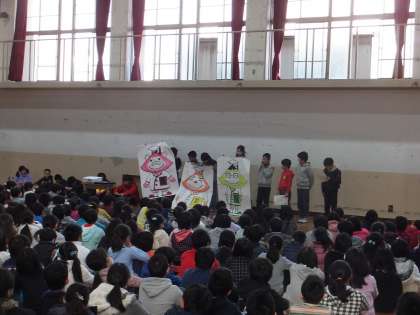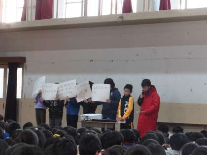 2月6日(月)の朝会で,給食委員会の発表がありました。