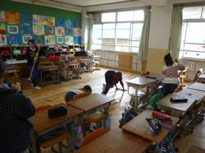 雑巾を洗うのが冷たそうですが,みんなの使う教室をきれいにしようと